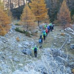 Cette semaine dans le Queyras (à l’oral, on ne prononce pas le « s ») a été parfaitement choisie ! Non pas parce qu’entre l’anniversaire d’Isabelle et celui de Nadine, les occasions de passer de bons moments n’ont pas manqué, mais parce que les couleurs qu’arboraient les aiguilles des mélèzes étaient à l’apogée de leur splendeur ! Avant même d’arriver au gîte, les pentes du col de l’Izoard étaient recouvertes d’un fabuleux tapis jaune qui ne nous quitta pas du séjour.